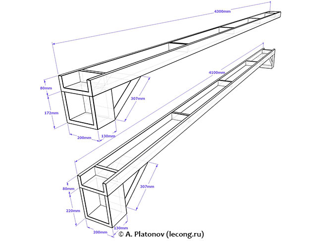 Накладная декоративная потолочная балка для имитации фахверка. Если делать их из цельного бруса, то они получается слишком тяжелыми, решили сделать из шпонированной фанеры.