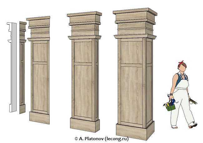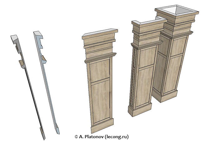 Декоративные панели для имитации колонн. Такие штуки заказывают у производителей дверей и кухонь. Если будете заказывать нечто подобное, будьте готовы к тому, что производитель начнет навязывать вам либо свой цвет, либо свой материал, что сильно влияет на ценник.