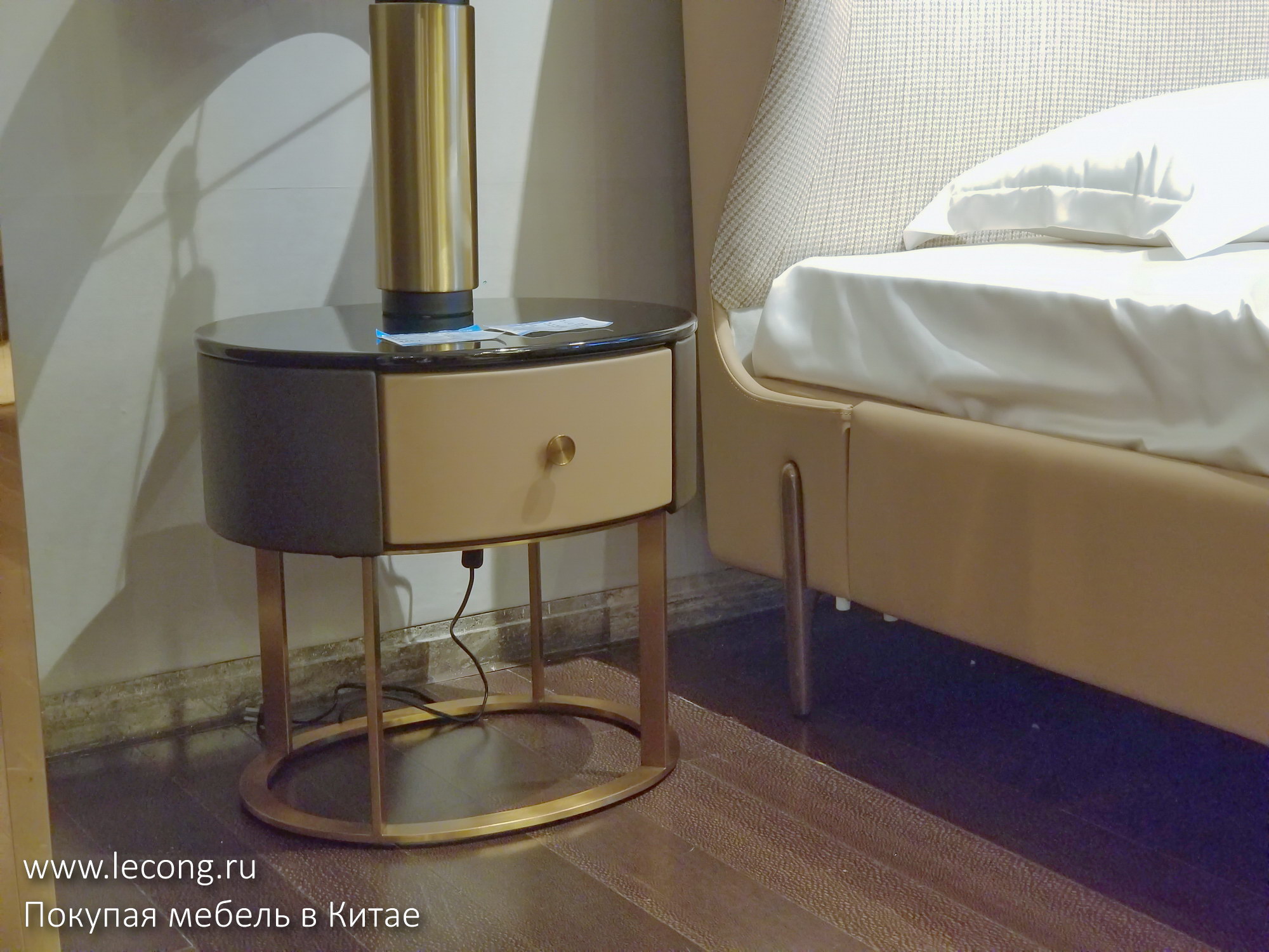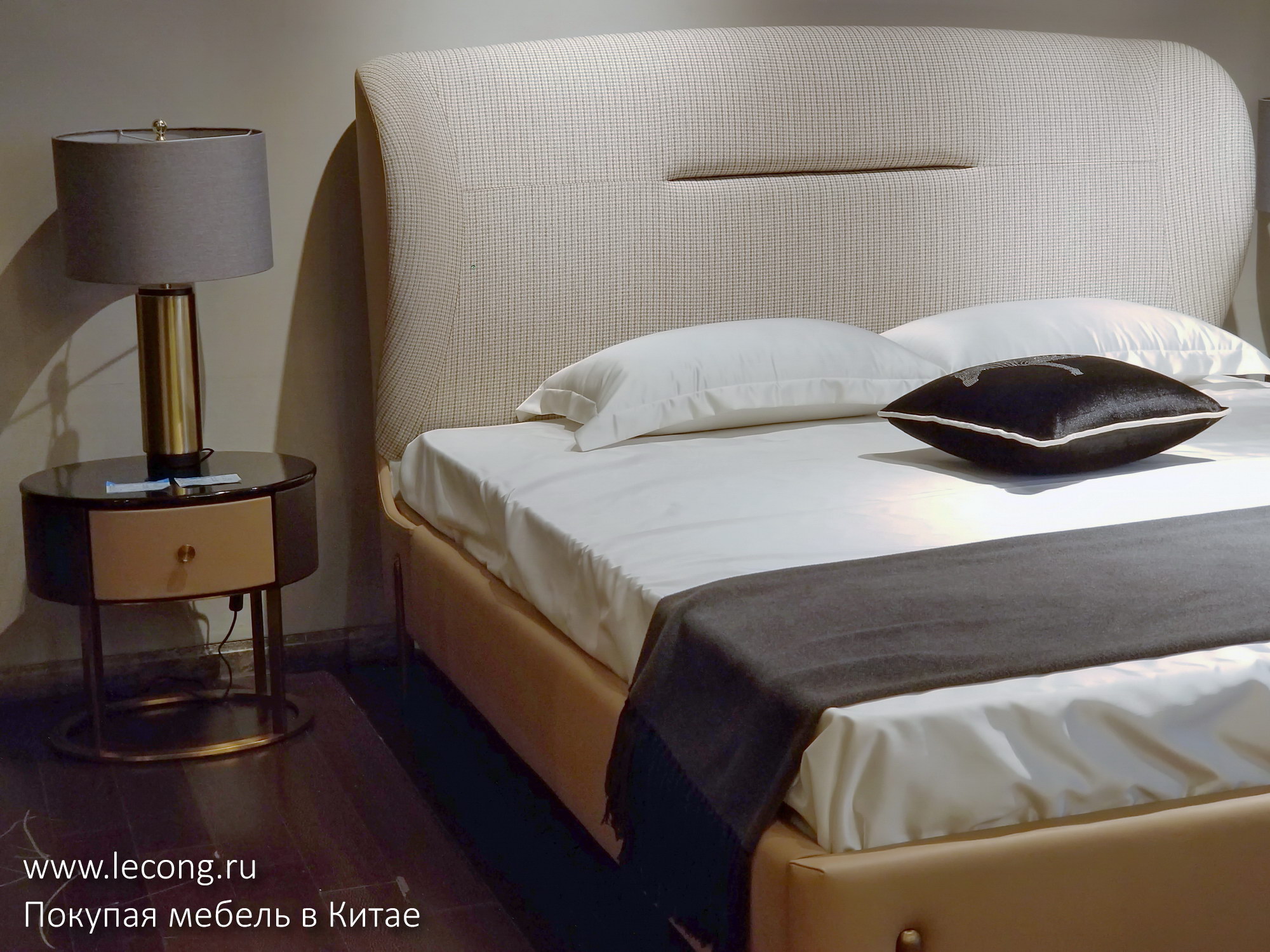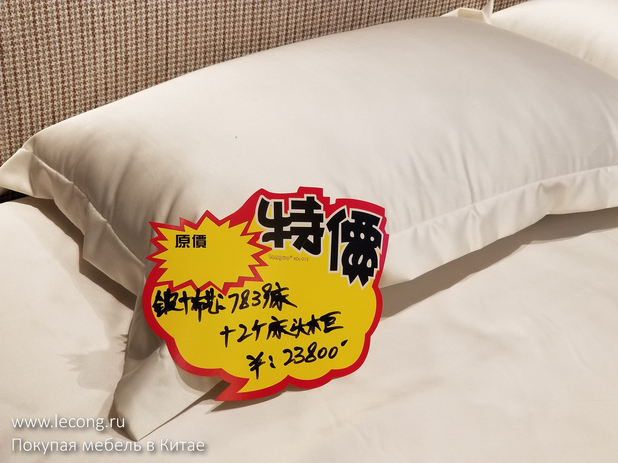 На ценнике: кровать и две прикроватные тумбы 23.800 юаней. Напоминаю, что если вам нравится какой-то предмет, вы можете приобрести его через меня по договору поставки в рублях или долларах США с доставкой до двери.