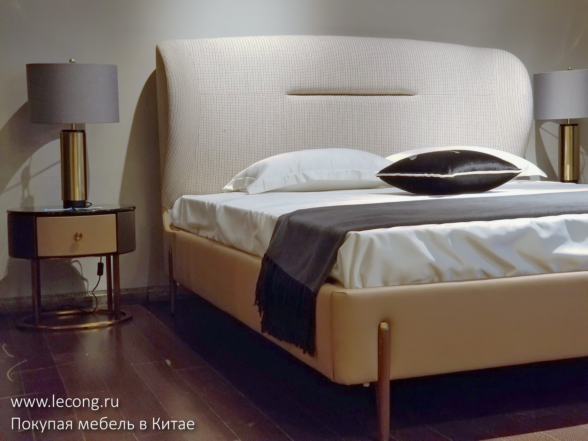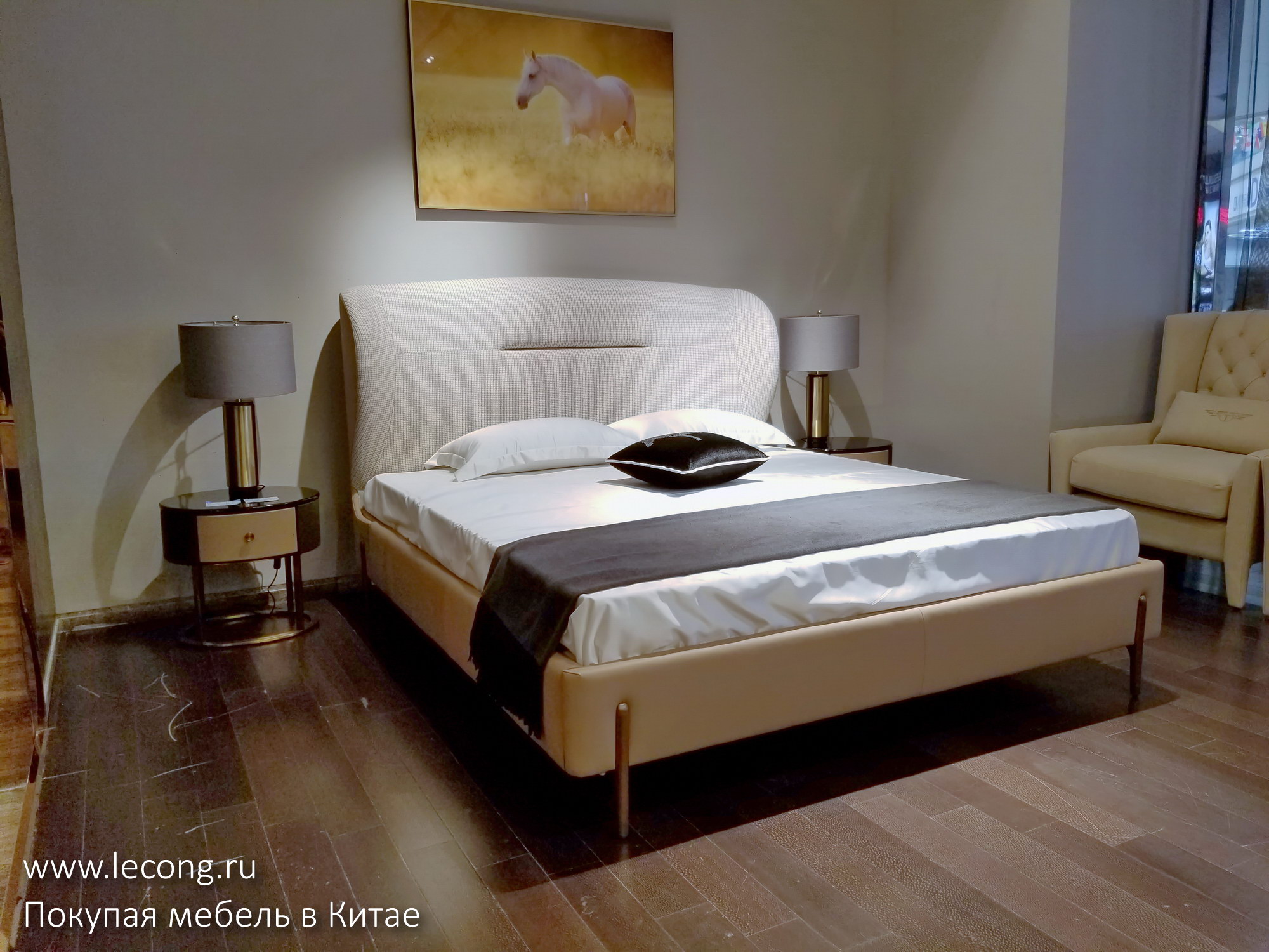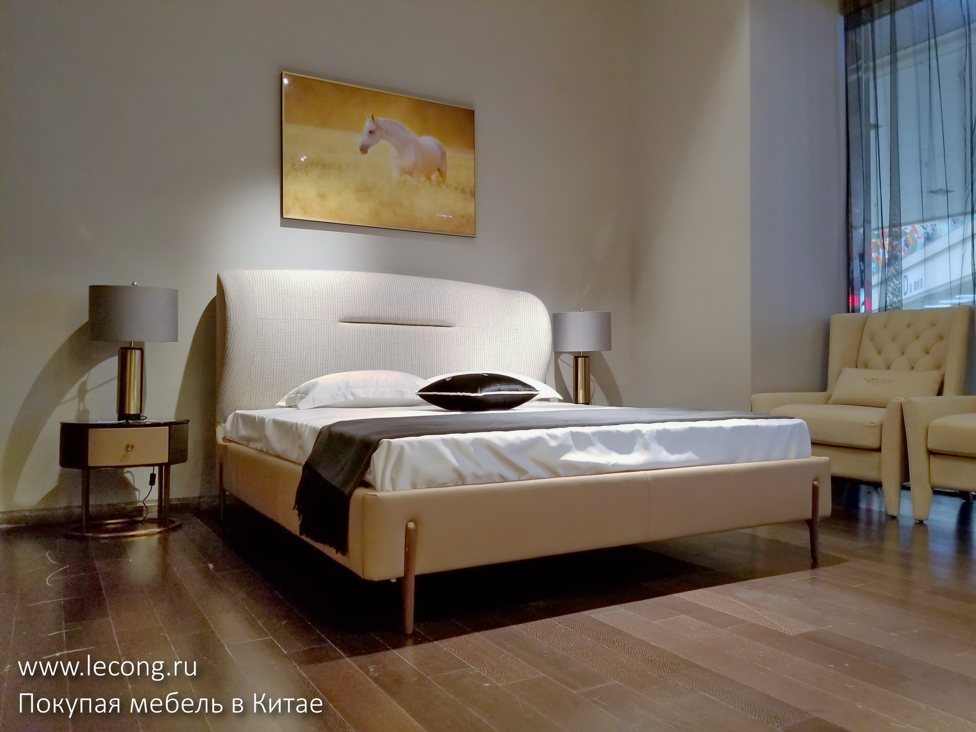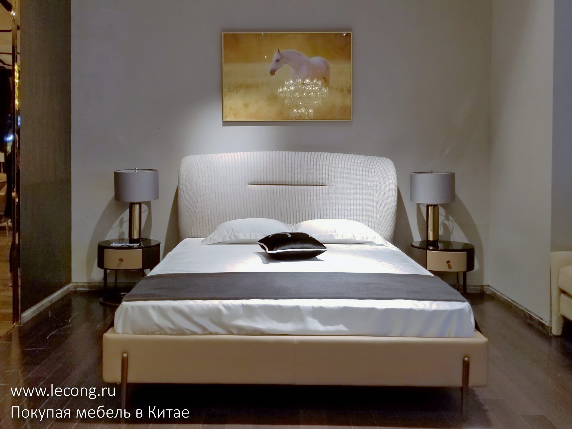 На ценнике: кровать и две прикроватные тумбы 23.800 юаней. Напоминаю, что если вам нравится какой-то предмет, вы можете приобрести его через меня по договору поставки в рублях или долларах США с доставкой до двери.